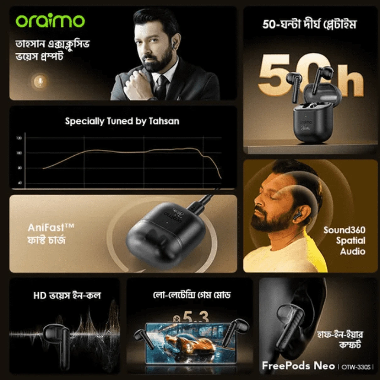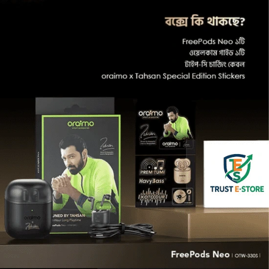 Oraimo FreePods Neo – premium sound, long battery life, ও Active ENC (Environmental Noise Cancellation) দিয়ে স্মার্টলি ডিজাইনকৃত একটি ওয়্যারলেস ইয়ারবাডস। স্টাইল, পারফরম্যান্স ও বাজেট সব একসাথে পেতে চাইলে এটাই বেস্ট।